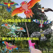 动态手持鱼竿风筝新款儿童地摊玩具网红儿童卡通老鹰风筝微风易飞