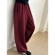 言双 韩系仿羊羔毛松紧腰卫裤女 冬季可束脚百搭休闲裤长裤G8332