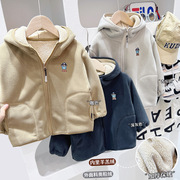 男儿童外套秋冬款2024韩版中大童拉链衫宝宝加厚羊羔绒夹克宽松潮