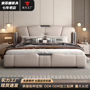 泡芙云朵床意式极简真皮床主卧实木软包婚床双人床头层牛皮储物床