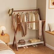 榉木折叠挂衣架落地床边晚上放衣服神器卧室衣帽架简易实木收纳架