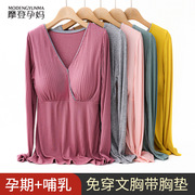 哺乳长袖上衣免穿文胸孕妇喂奶上衣莫代尔月子服夏季薄款哺乳睡衣