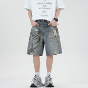 牛仔短裤男夏季美式复古潮流水洗直筒裤子高街vibe痞帅休闲五分裤