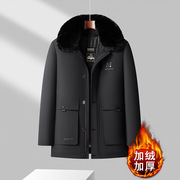 男士加绒加厚可拆卸毛领派克服高端中长款棉衣爸爸装冬季保暖外套