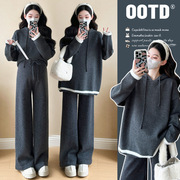 实拍现货2024孕妈秋冬软糯时尚毛衣休闲款连帽裤腿裤时尚套装