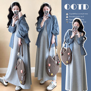 实拍现货~2024早秋新品韩版时尚宽松纯棉背心裙+条纹衬衫两件套