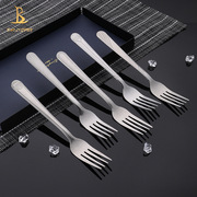 源头厂家直供创意花纹餐叉 不锈钢叉子可镀钛金 水果叉勺食堂叉子