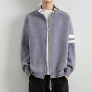 安洋男士针织立领毛衣开衫2025秋冬新款时尚百搭撞色条纹休闲外套