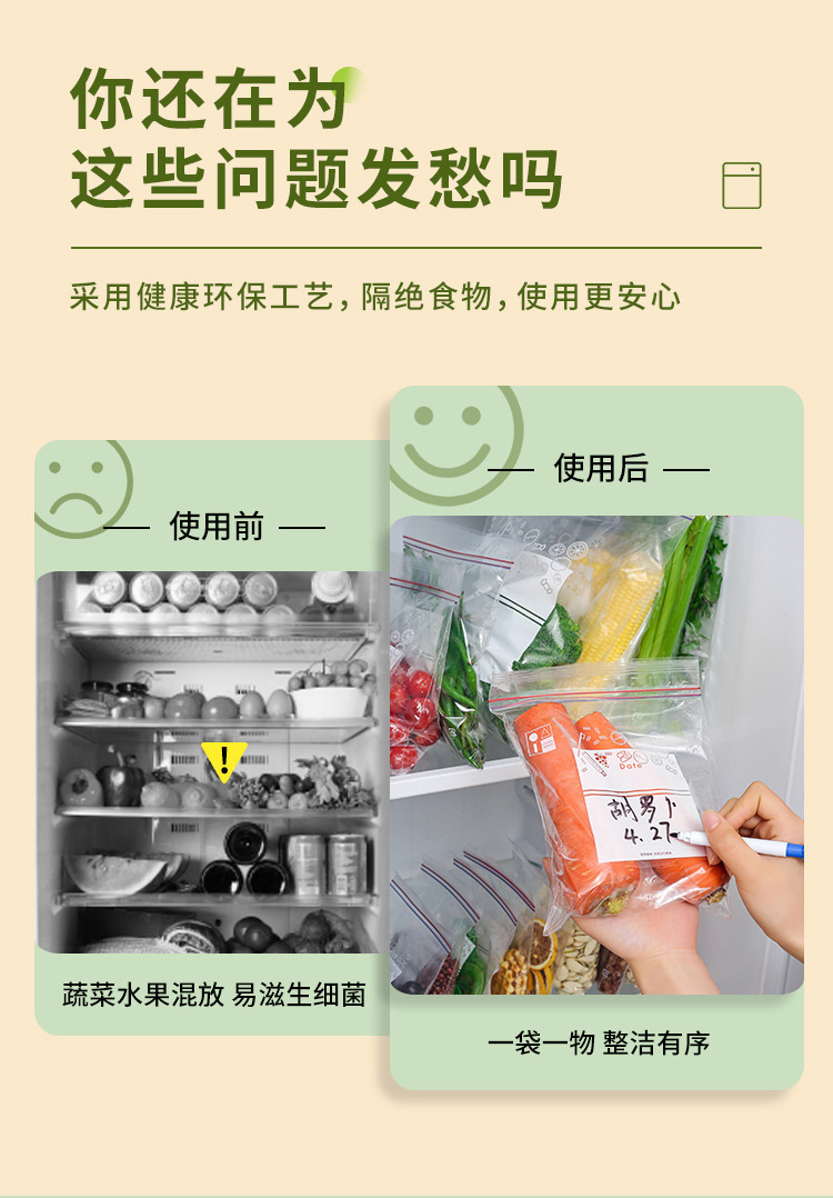 厨房蔬菜保鲜袋食品级家用冰箱收纳密封袋密实袋自封袋分装食品袋