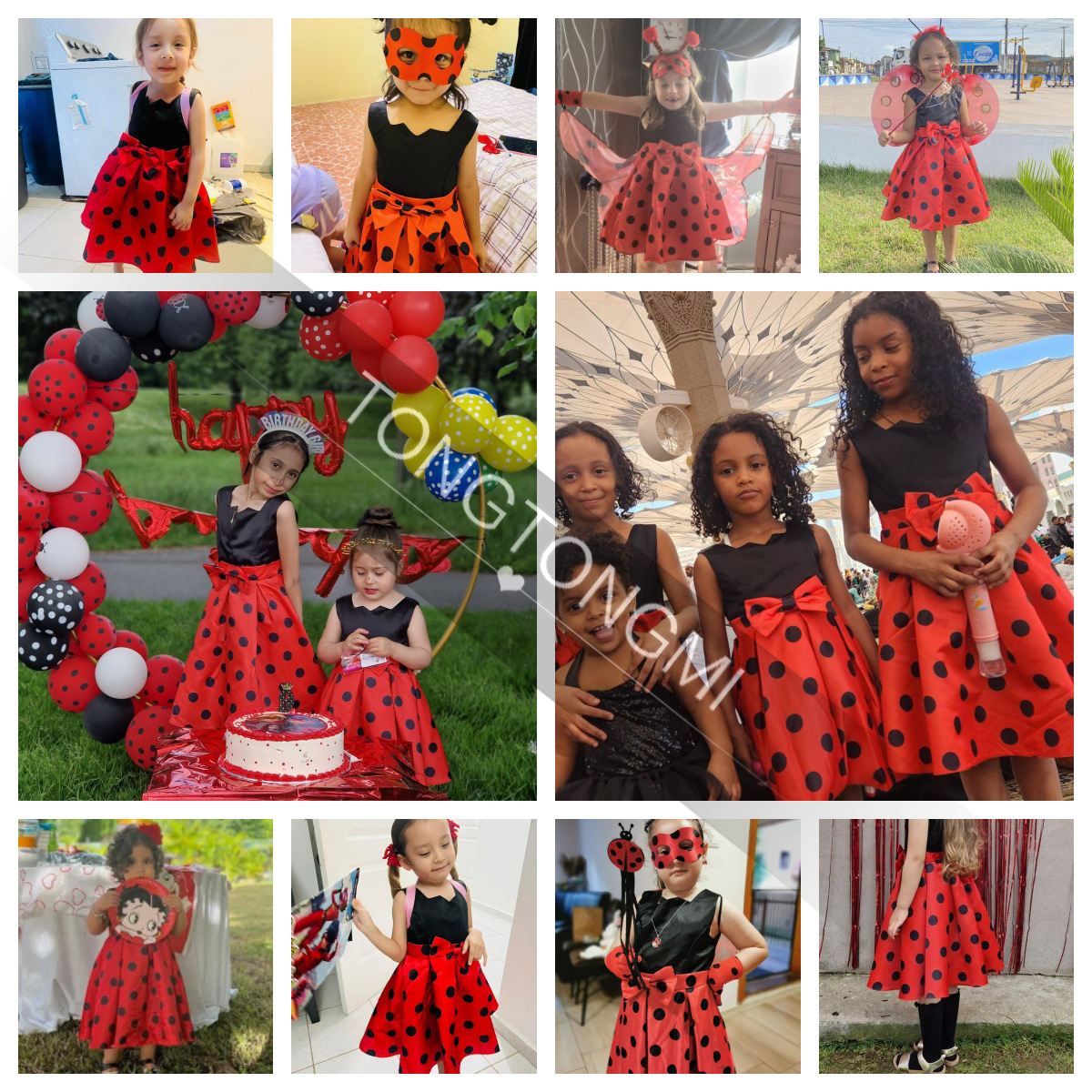 女童连衣裙复古波点印花儿童裙圣诞节童装派对演出服晚礼服公主裙
