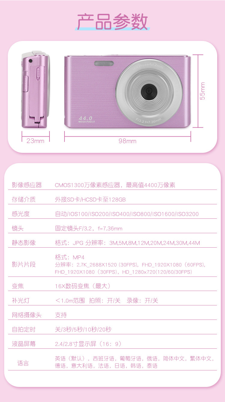 支持WIFI传输CCD校园学生相机5000W高清双摄迷你复古数码相机玩具