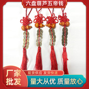 五帝钱桃木葫芦合金六盘吉祥小中国结车古币挂摆件平安转运