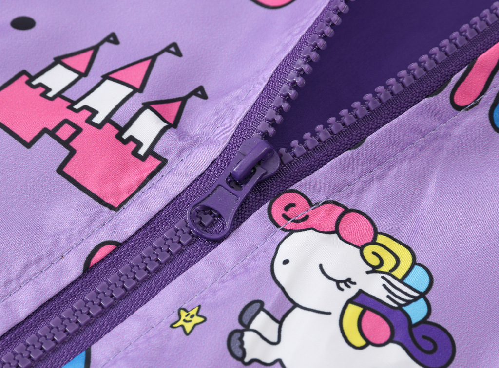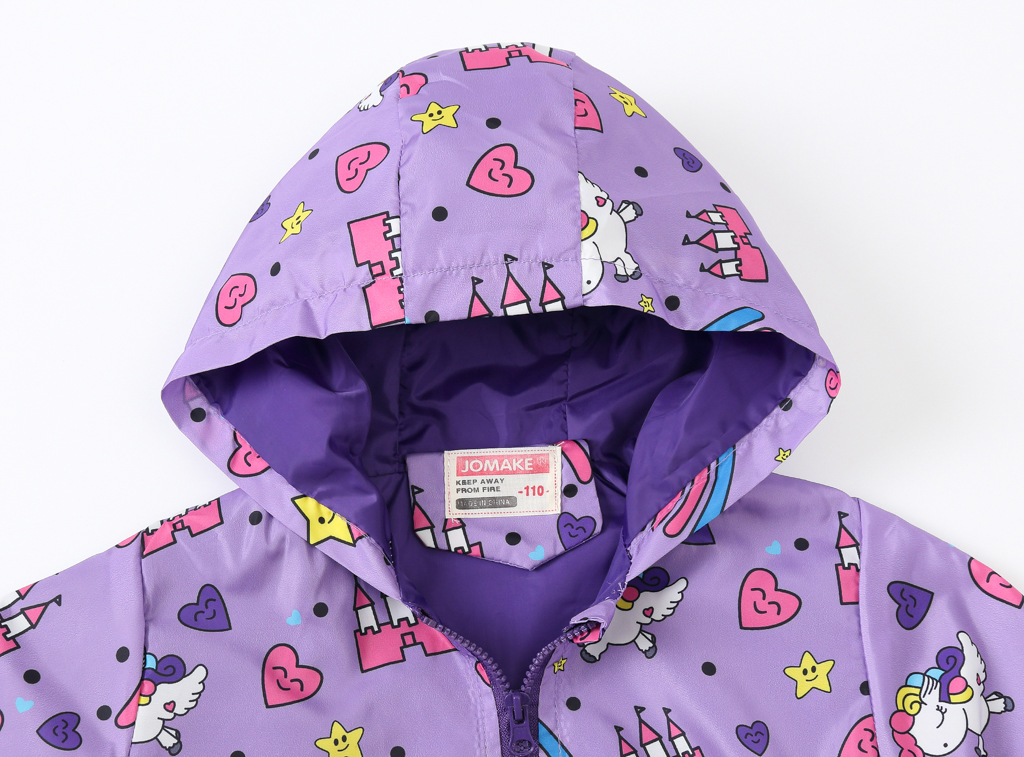 新款卡通火烈鸟冲锋衣2025春秋女儿童印花连帽外套拉链衫外贸
