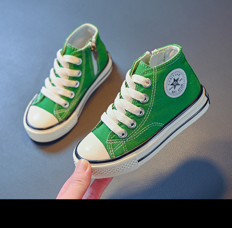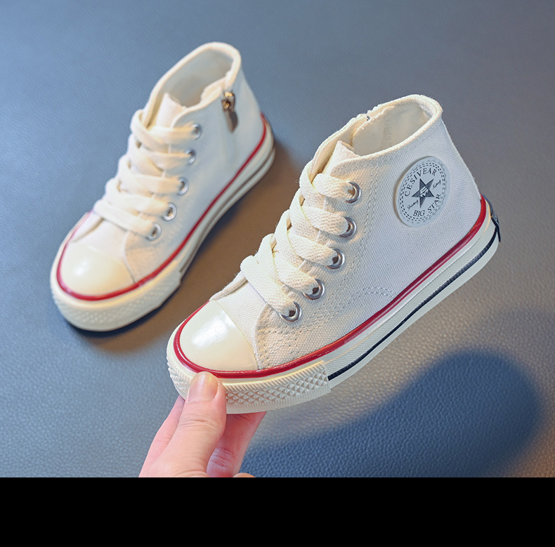 儿童高帮帆布鞋女童鞋子2025春秋新款潮透气男童小白鞋小孩子布鞋