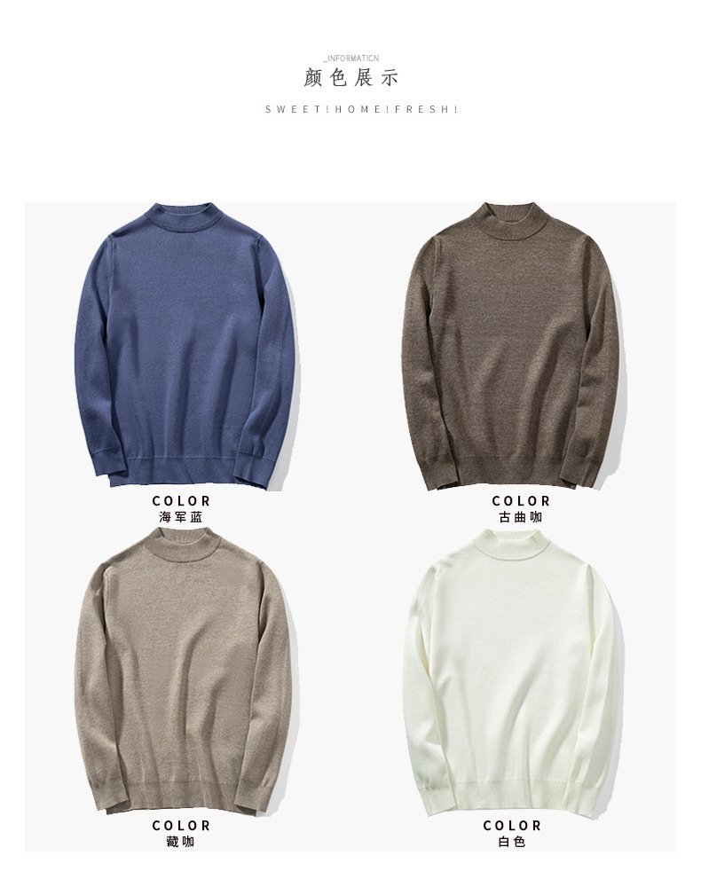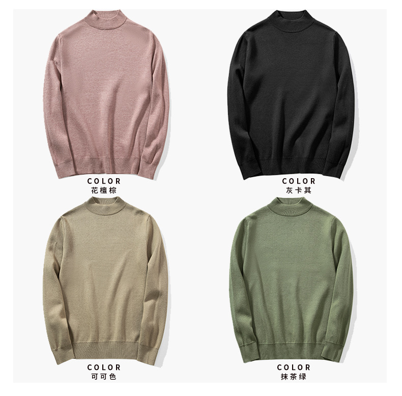 墨麦客半高领毛衣男秋冬季百搭毛衫简约纯色基础男士针织衫20006