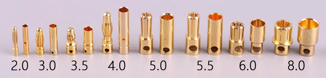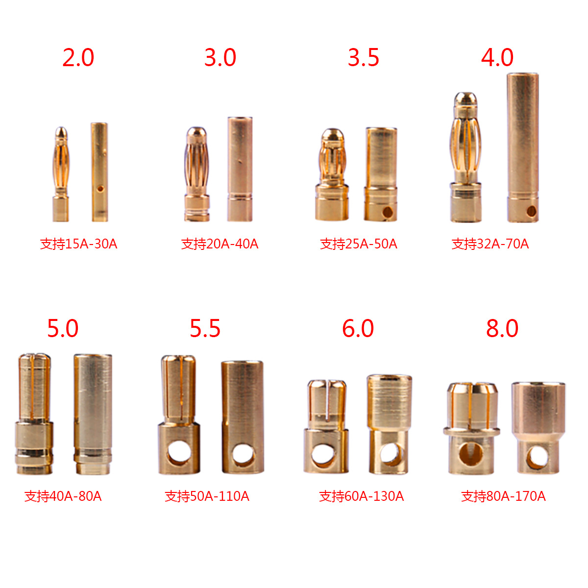 航模纯铜镀金灯笼香蕉插头2/3.5/4/5.5/6/8.0mm飞机电机电调接头