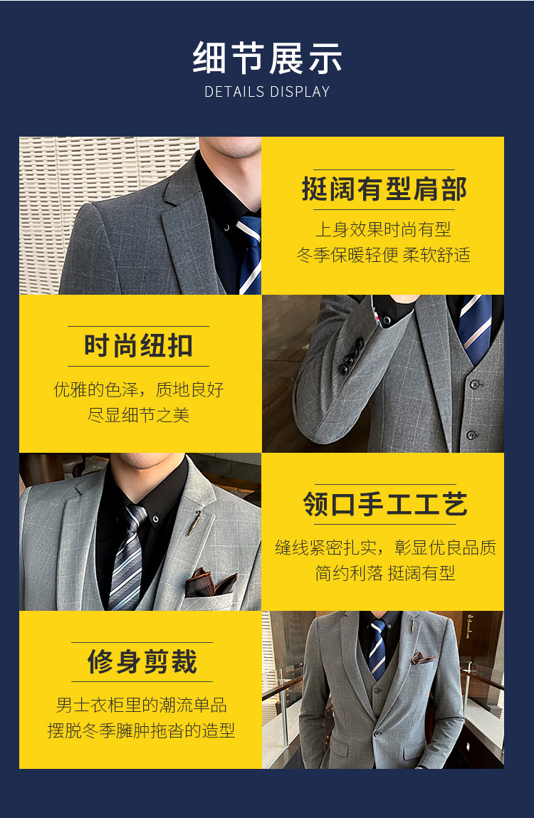 韩版修身羊毛高端同款男士羊毛西装套装深灰色职业装商务风西服套