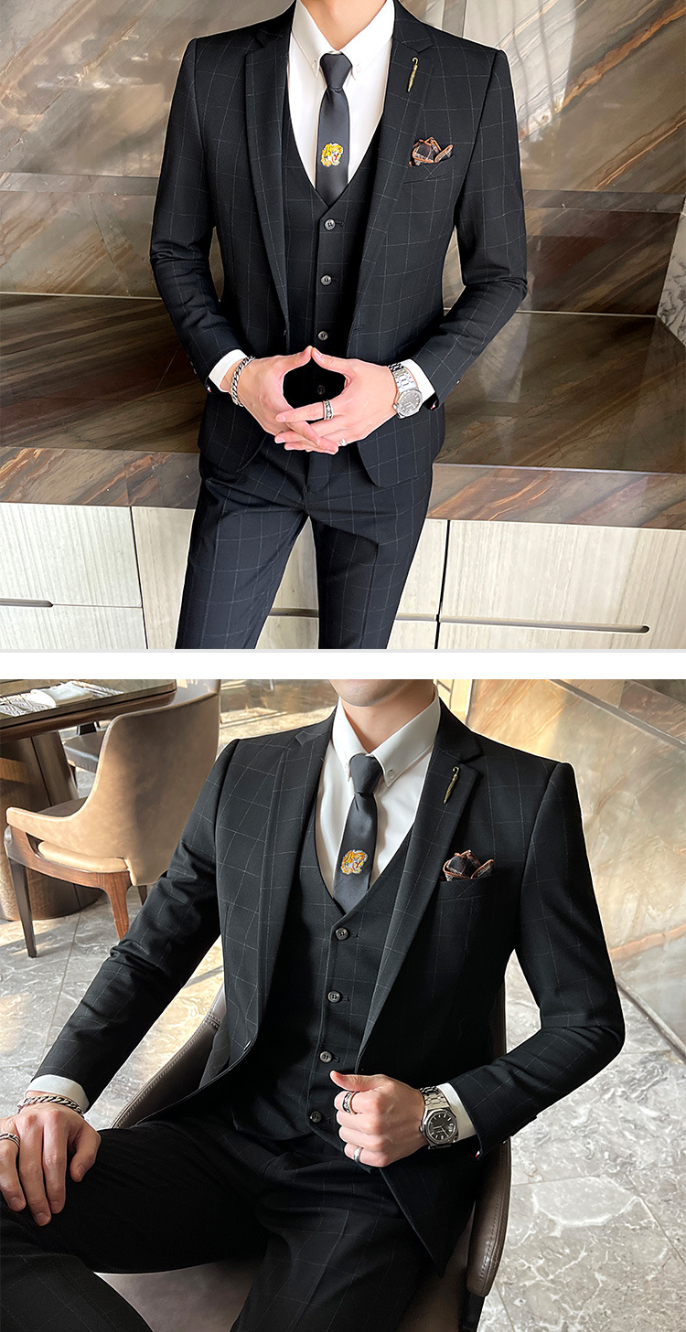 格子西装男套装休闲潮流修身韩版男士婚礼小西服外套礼服新郎结婚