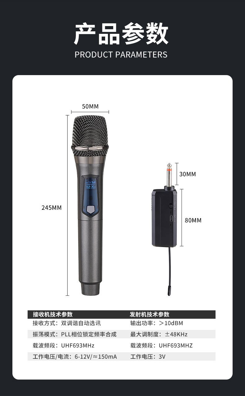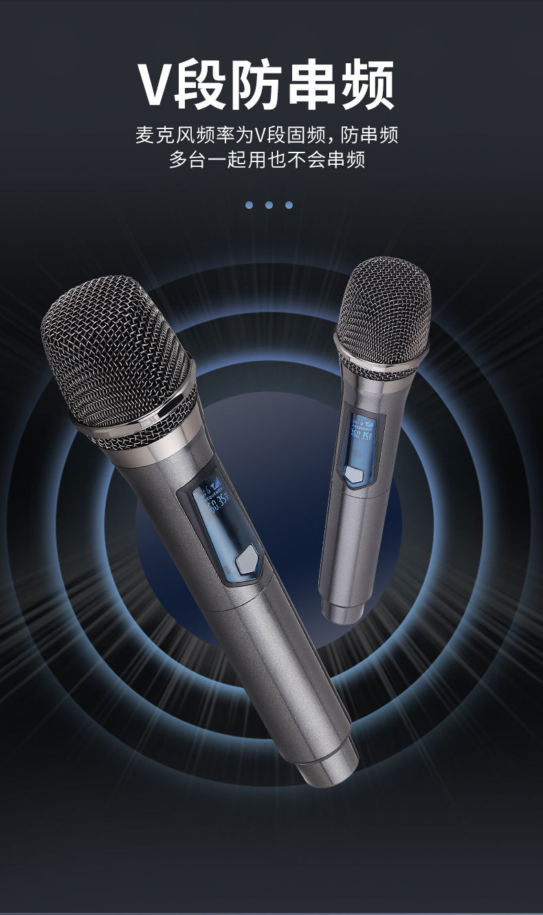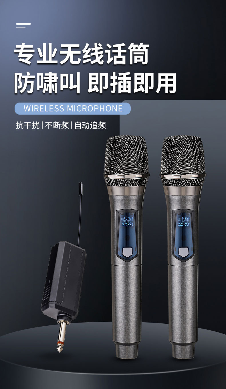 2.4g无线麦克风充电一拖二家用KTV声卡直播K歌V段专业 手持话筒