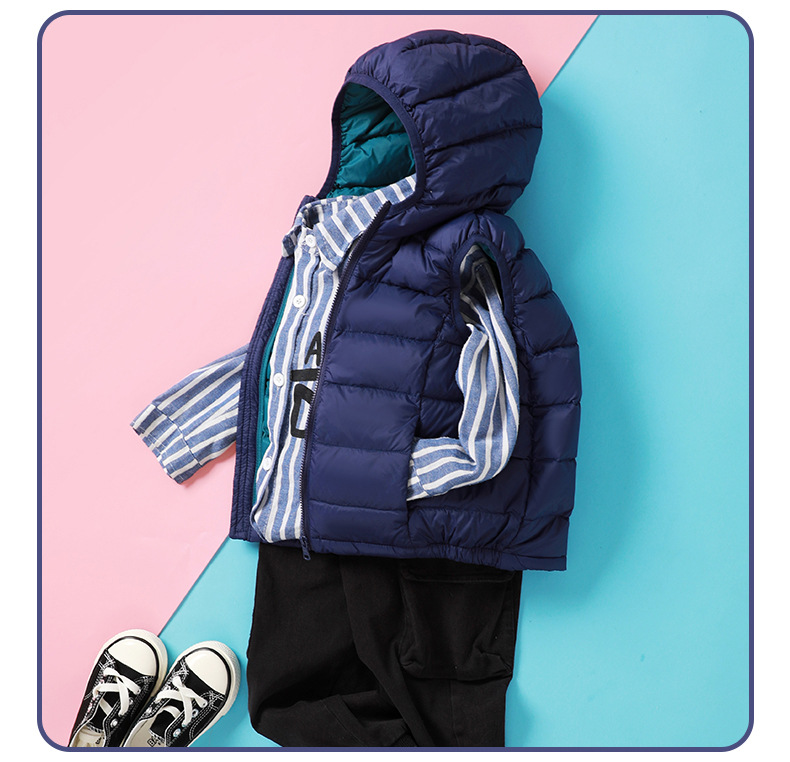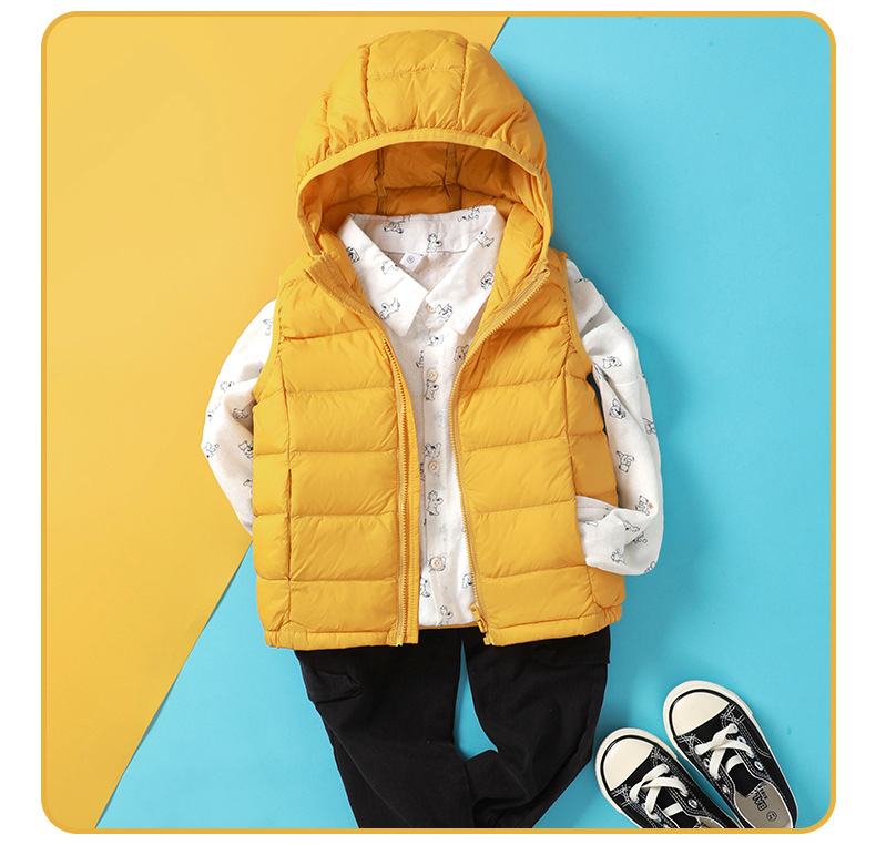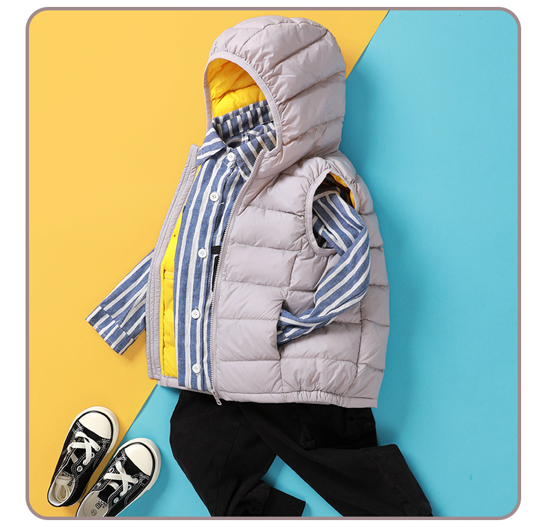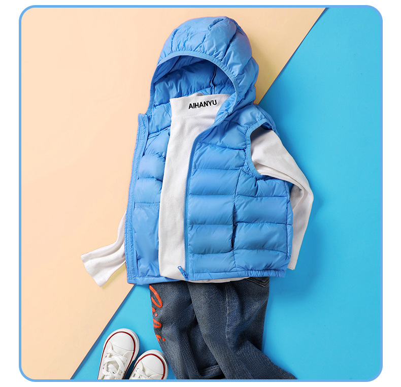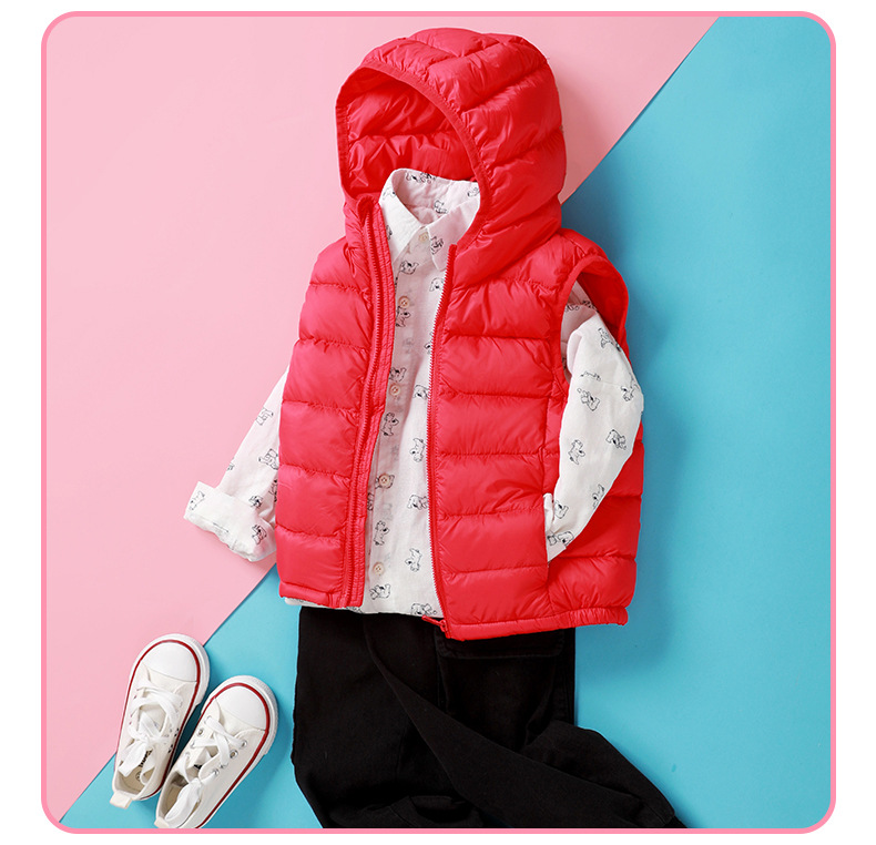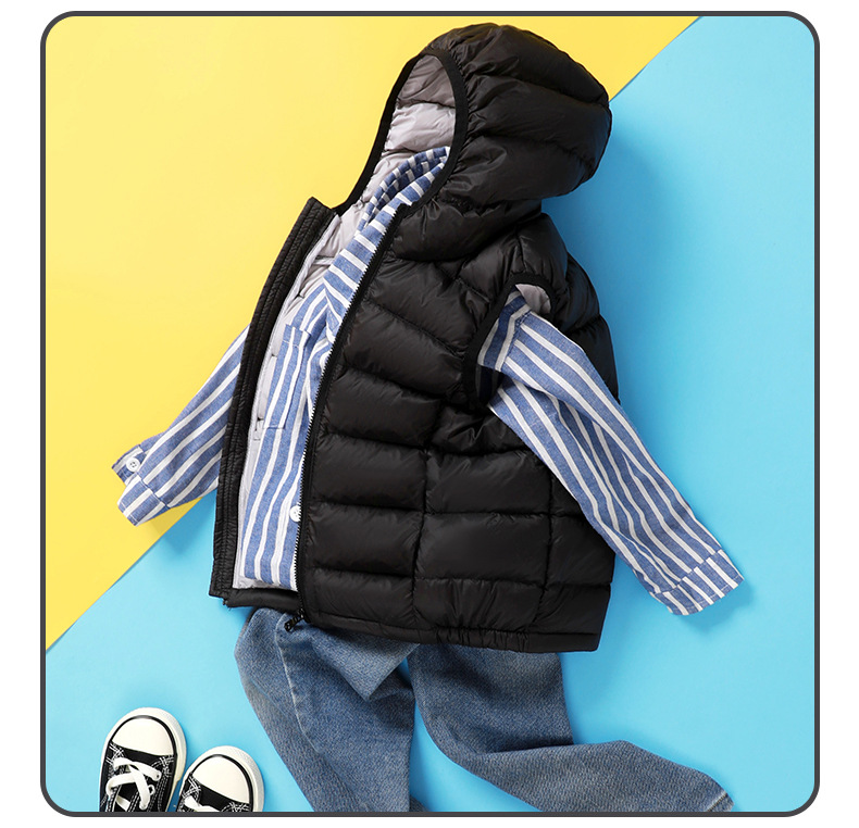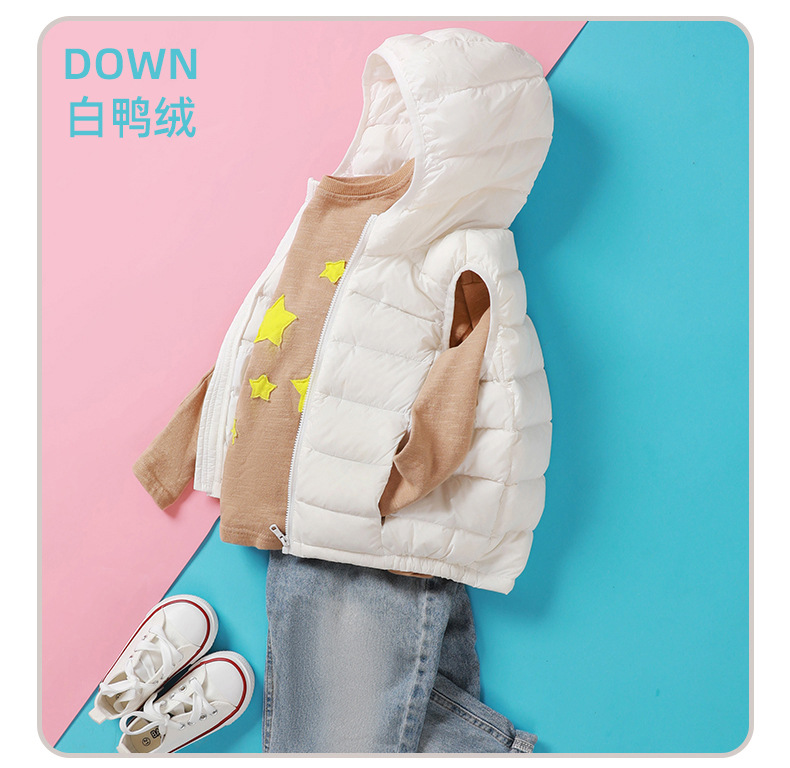 2025秋冬儿童轻薄羽绒服男款女款马甲连帽中大童短款90绒保暖外搭