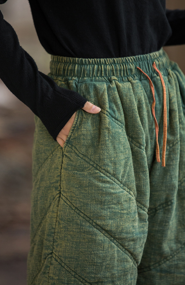 25冬季苎麻炒色做旧加绒加厚灯笼裤棉麻女装新品打坐禅修长裤棉裤