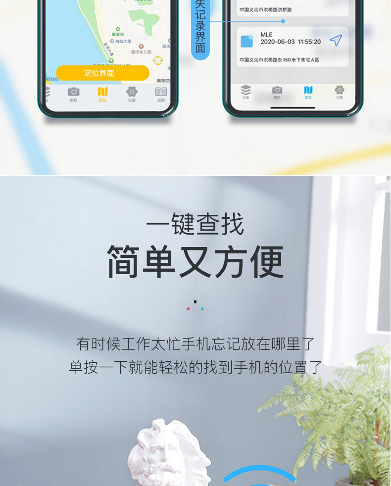 水滴智能蓝牙防丢器断点报警APP宠物钥匙手机工厂现货蓝牙追踪器