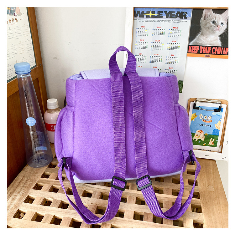 韩国ins港风街拍学生书包女休闲双肩包 日系原宿风简约纯色双肩包