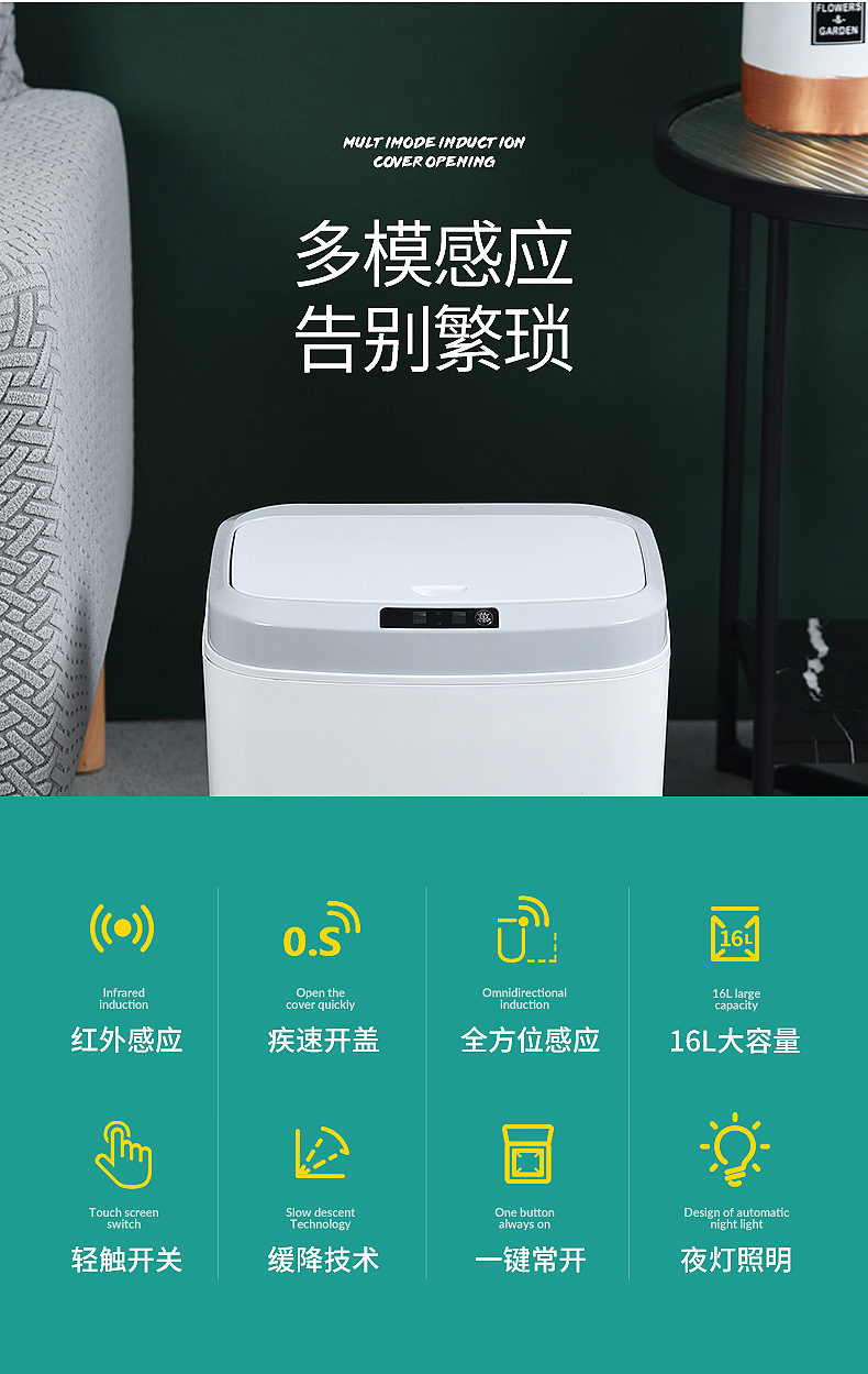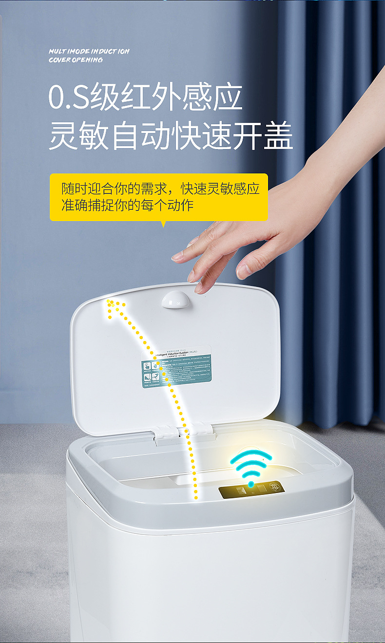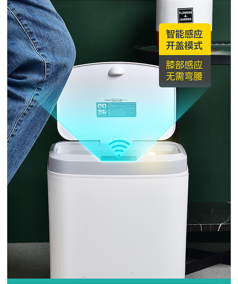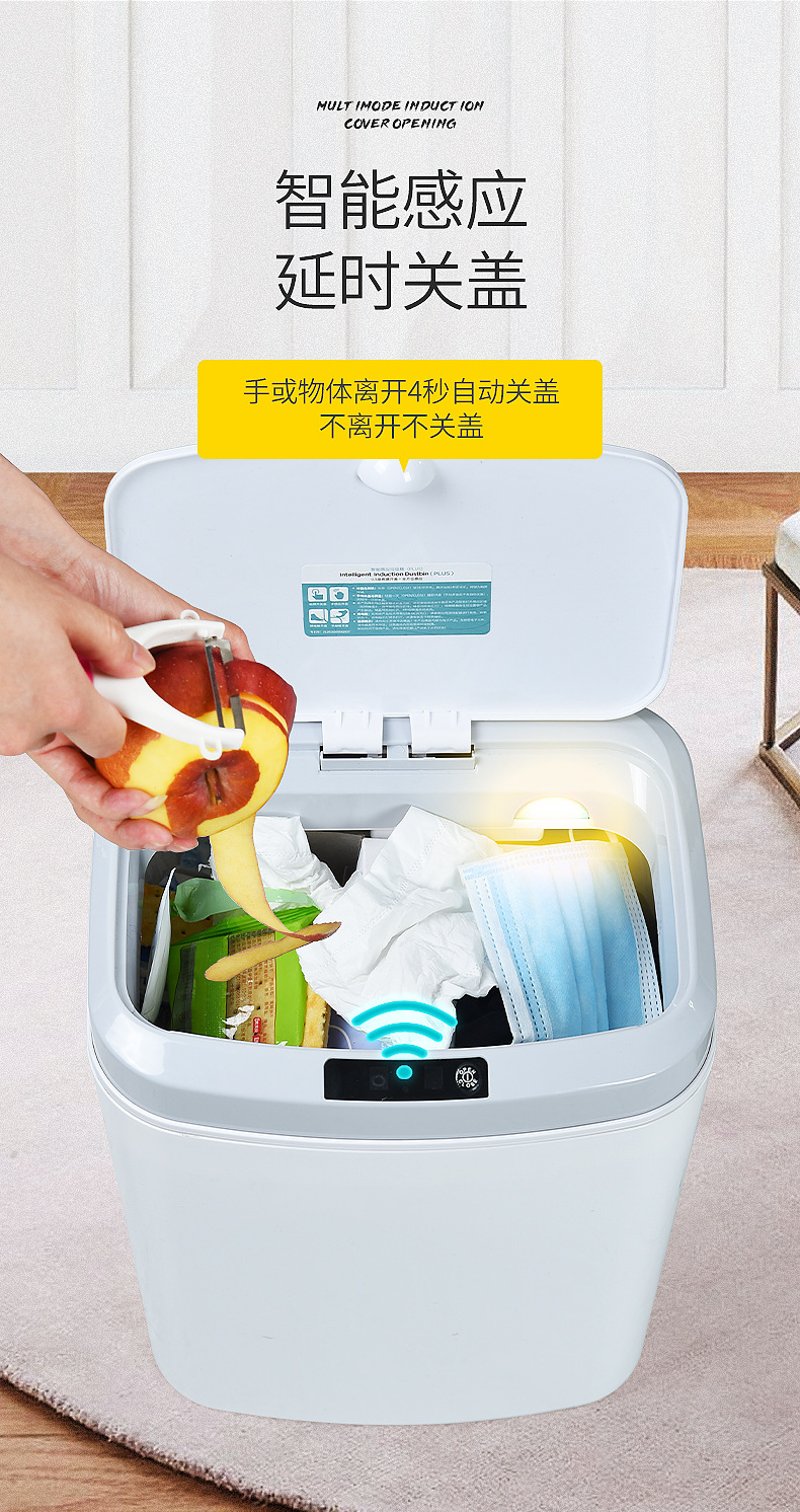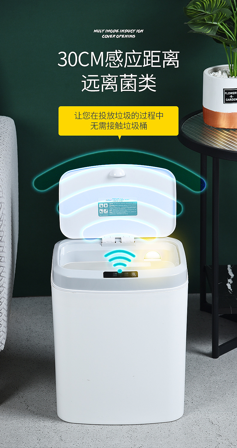 16L家用智能感应垃圾桶厨房客厅卧室卫生间自动电动开盖垃圾桶