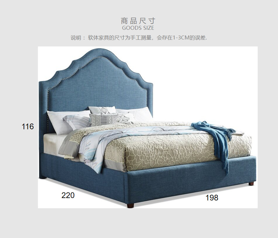 美式布艺床主卧小户型现代简约轻奢简欧床欧式北欧床床铺 双人床