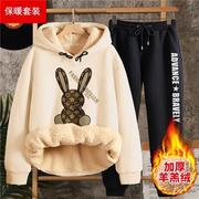 卫衣套装一整套羊羔绒学生套装女2022年新款秋冬加绒加厚卫衣卫裤