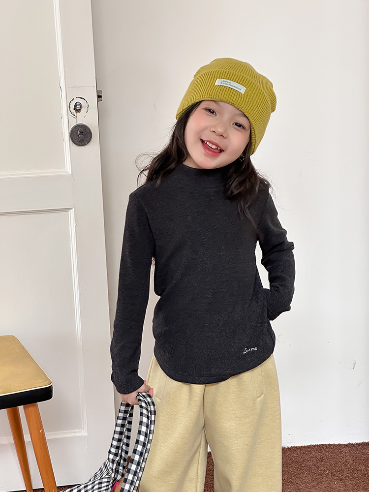 艾摩贝贝女童品质糯叽叽慕斯羊绒锁温面料休闲字母半高中领打底衫