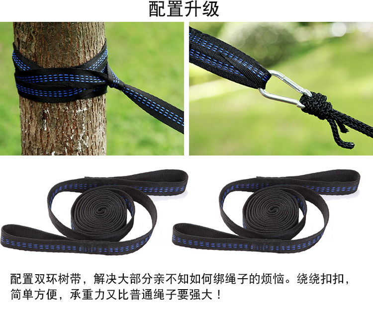 厂家户外吊床专用绑带绳子多环高承重套结黑色加固高强涤纶树带