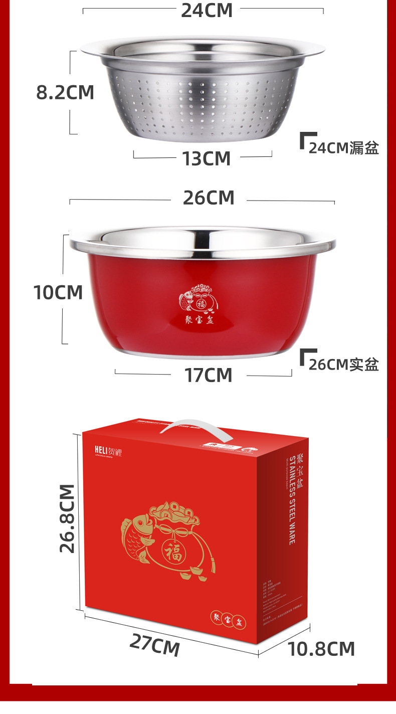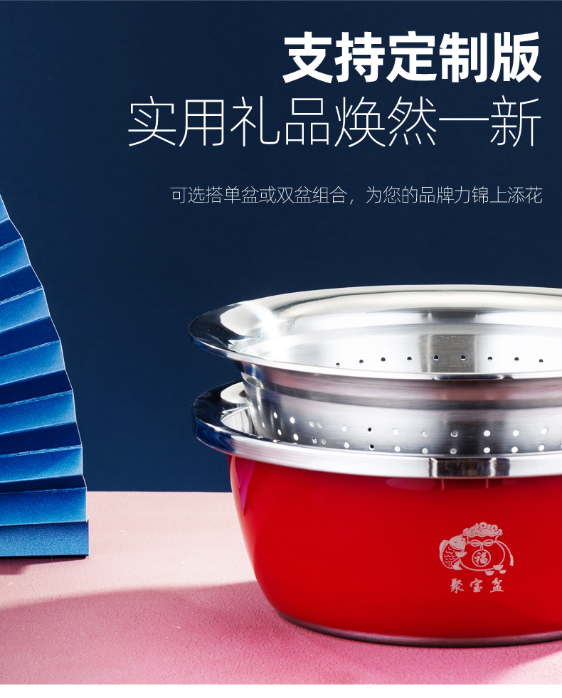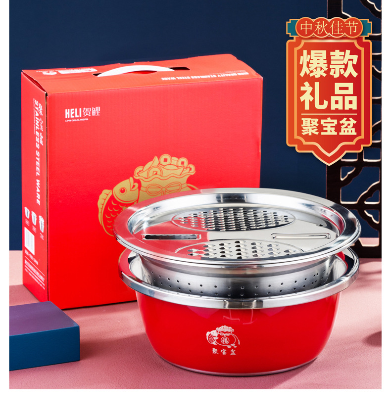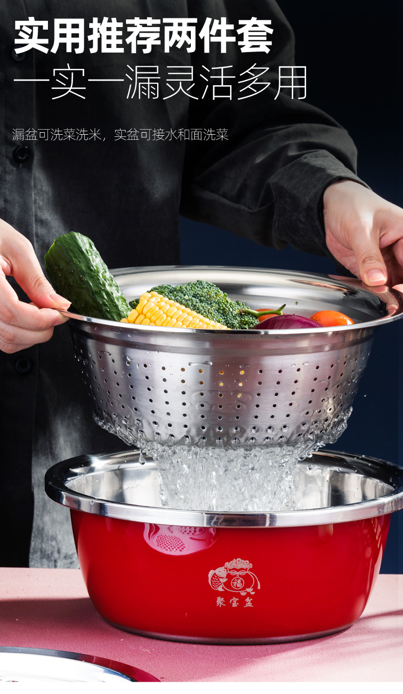 加厚不锈钢套装聚宝盆三件套洗菜盆淘米漏盆保险银行礼品盆防漏