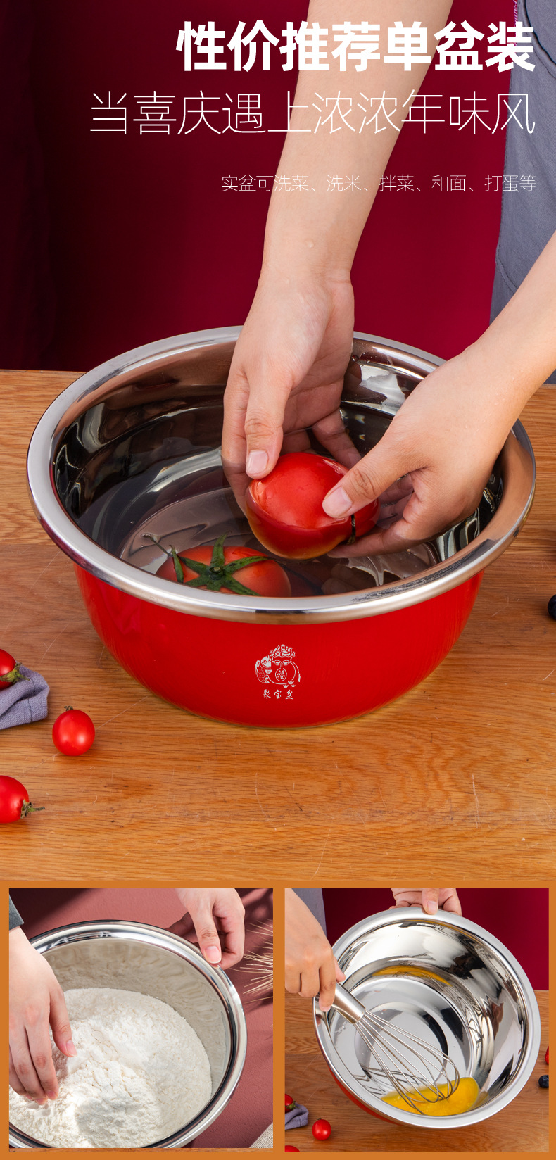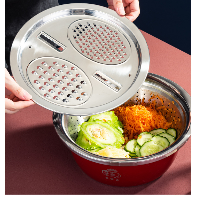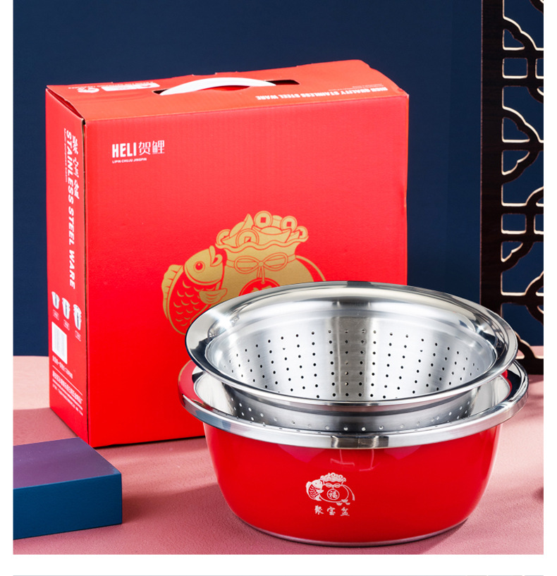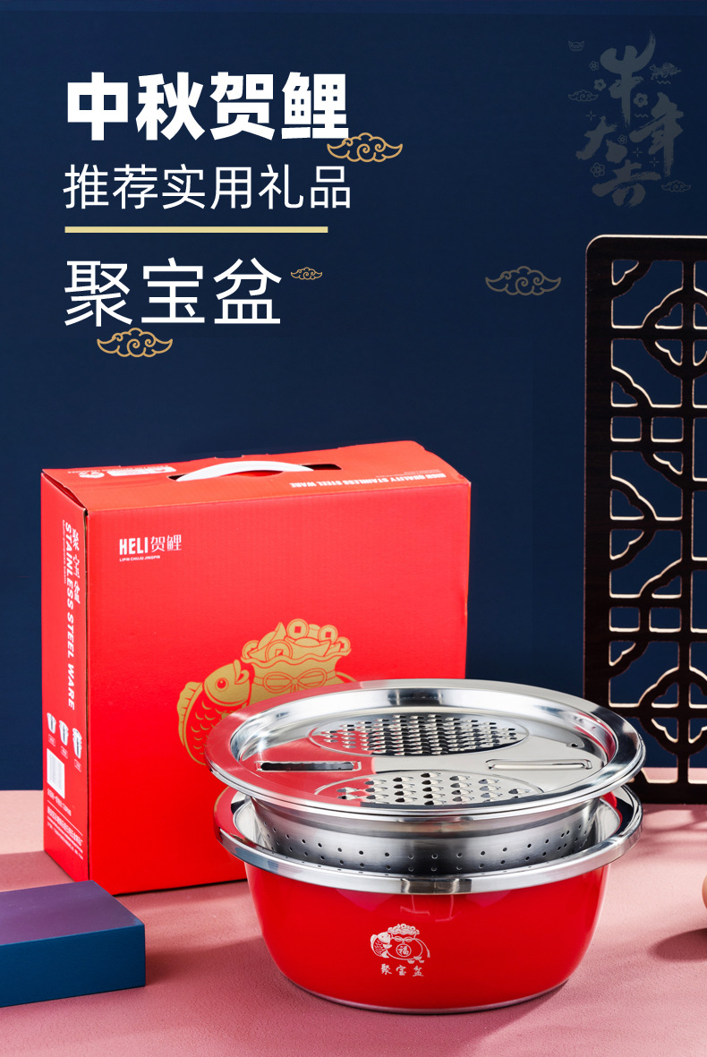 加厚不锈钢套装聚宝盆三件套洗菜盆淘米漏盆保险银行礼品盆防漏