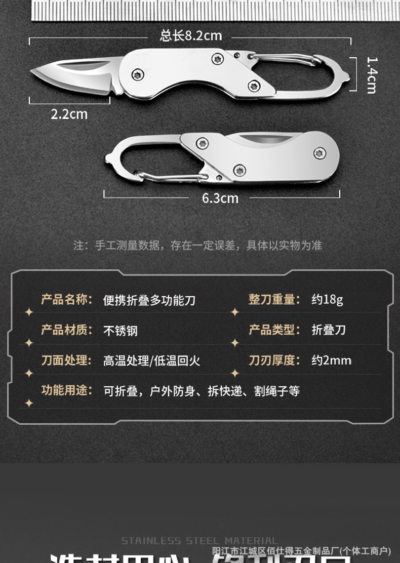 户外随身刀具便携迷你小刀折叠刀多功能EDC工具镀钛不锈钢钥匙刀