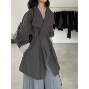 江左 英伦风翻领风衣外套女复古系带收腰中长款小个子宽松 1659