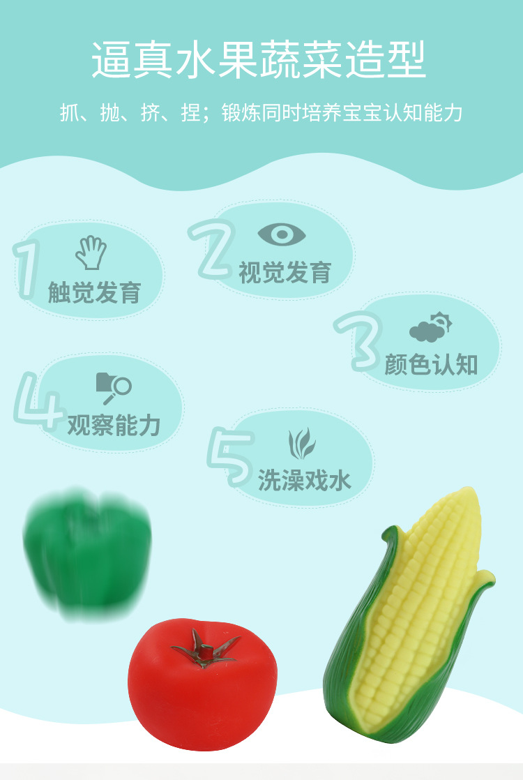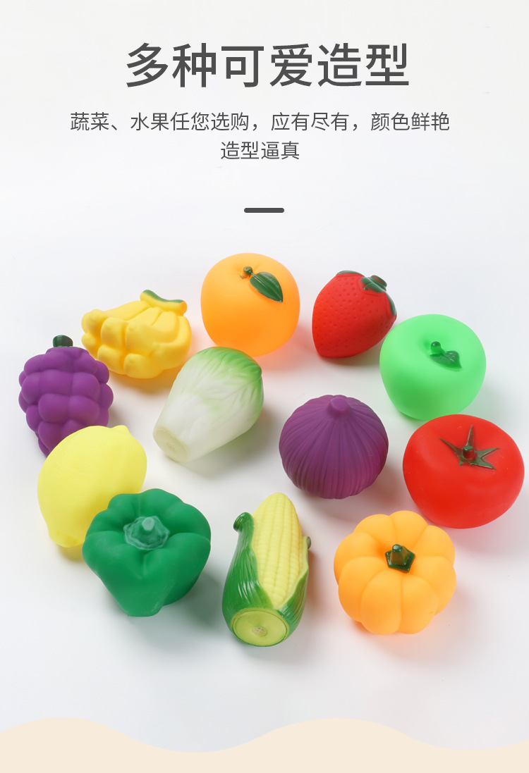 软胶仿真蔬菜水果宝宝洗澡玩具动物捏捏叫捏捏乐会叫认知早教玩具