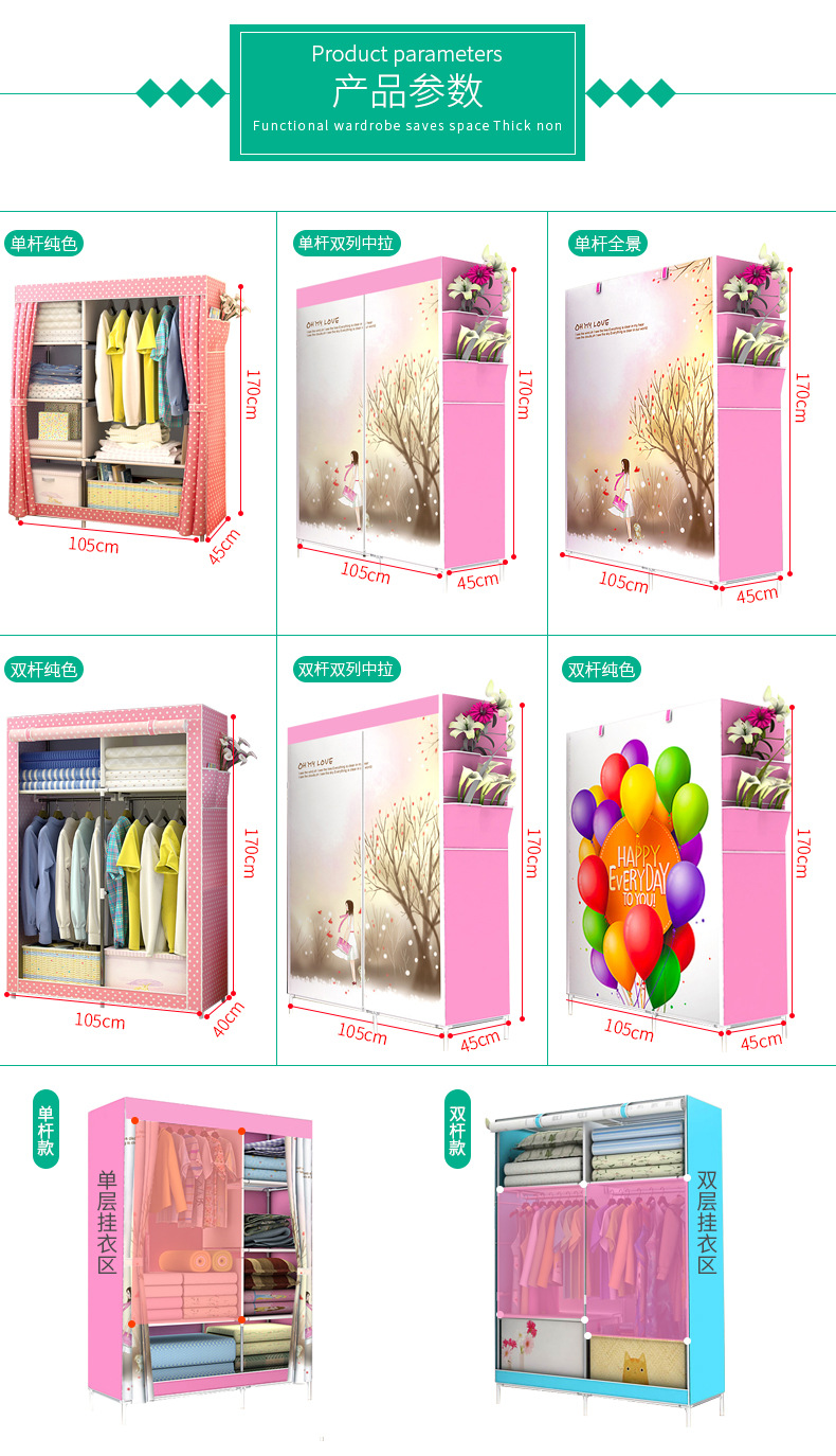 简易衣柜布衣柜钢管加粗加固衣柜布艺收纳组装迷你挂衣加厚布衣柜