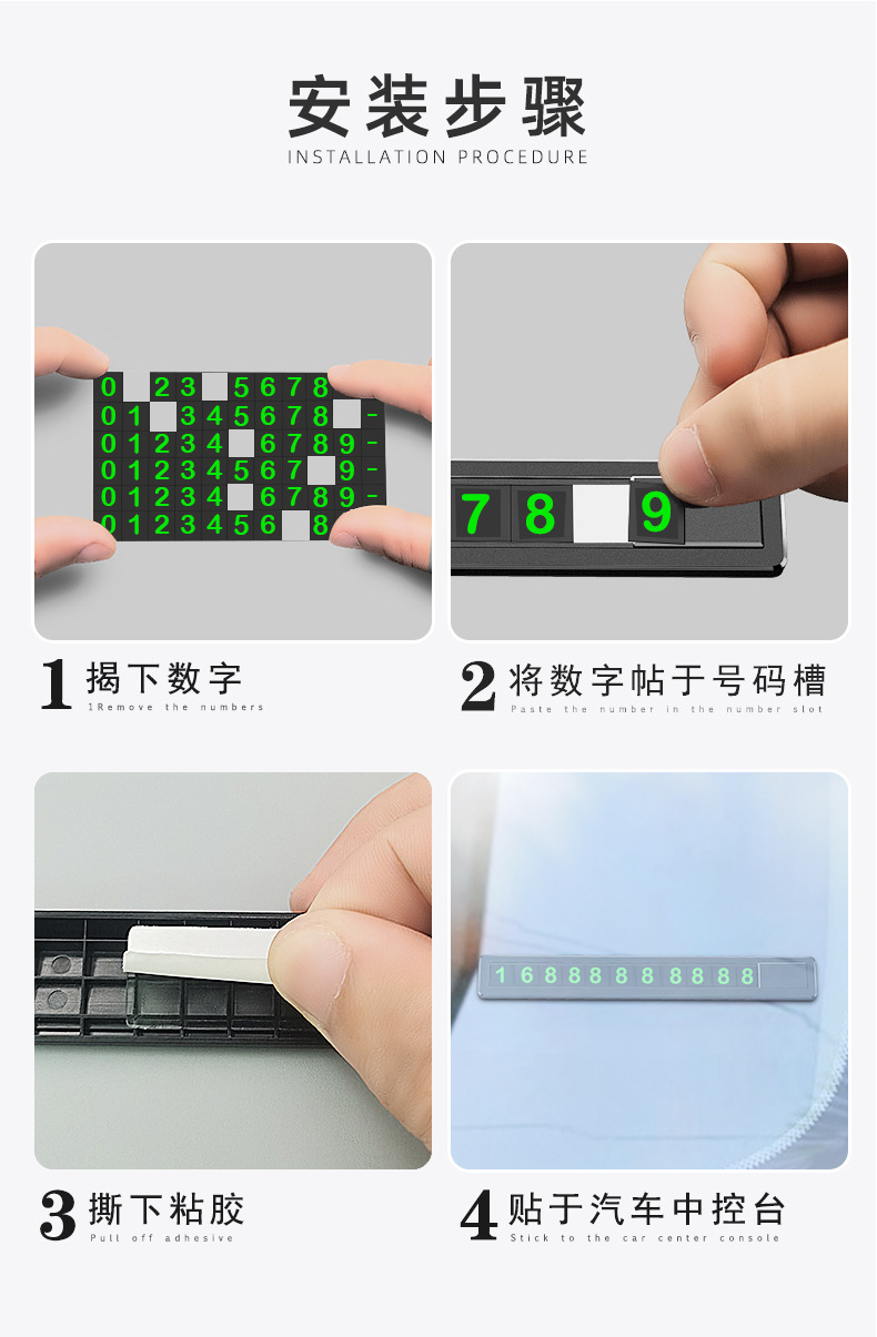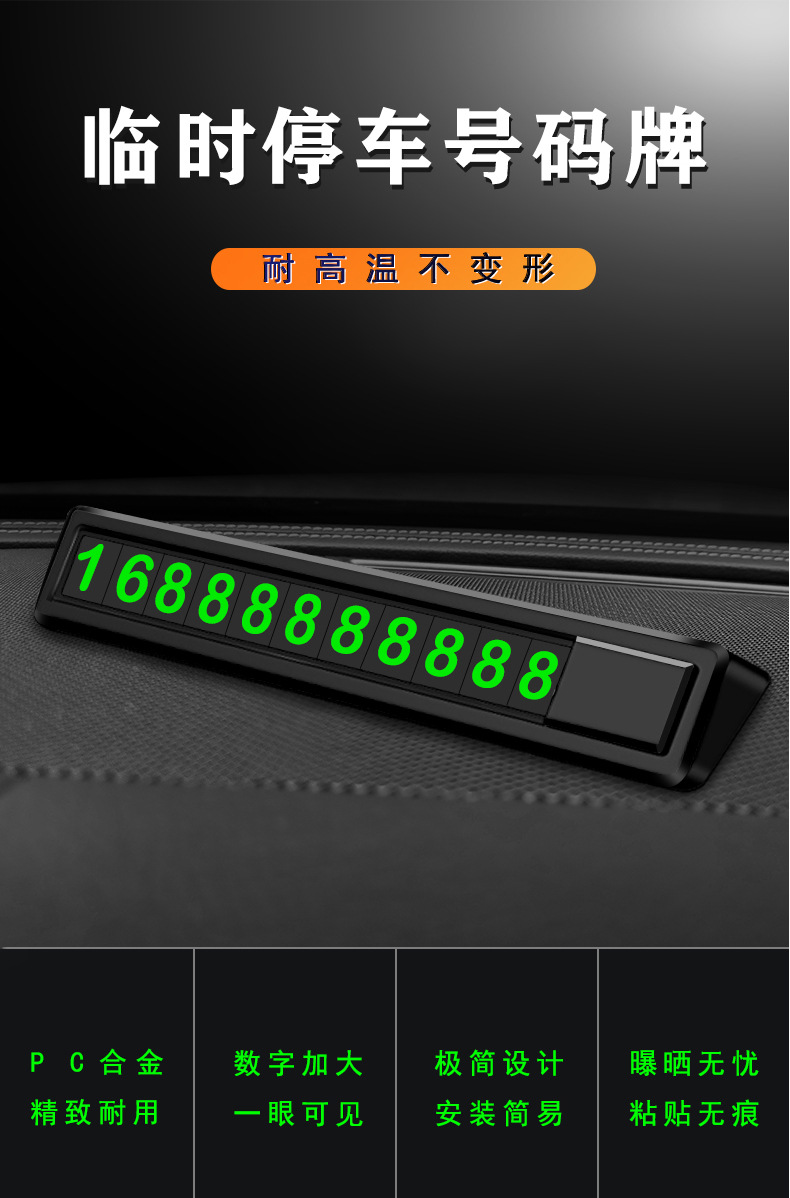 大促活动PC款车载停车牌停车卡夜光汽车挪车卡 临时停车号码牌