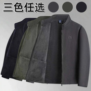 中老年男士摇粒绒外套爸爸春秋季保暖上衣老年人爷爷加绒加厚开衫