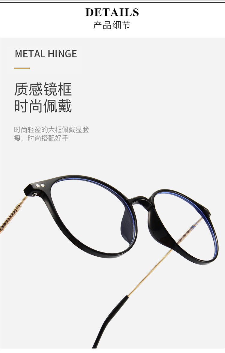 2022新款轻盈女士素颜平光镜复古椭圆形米钉眼镜框韩版防蓝光眼镜