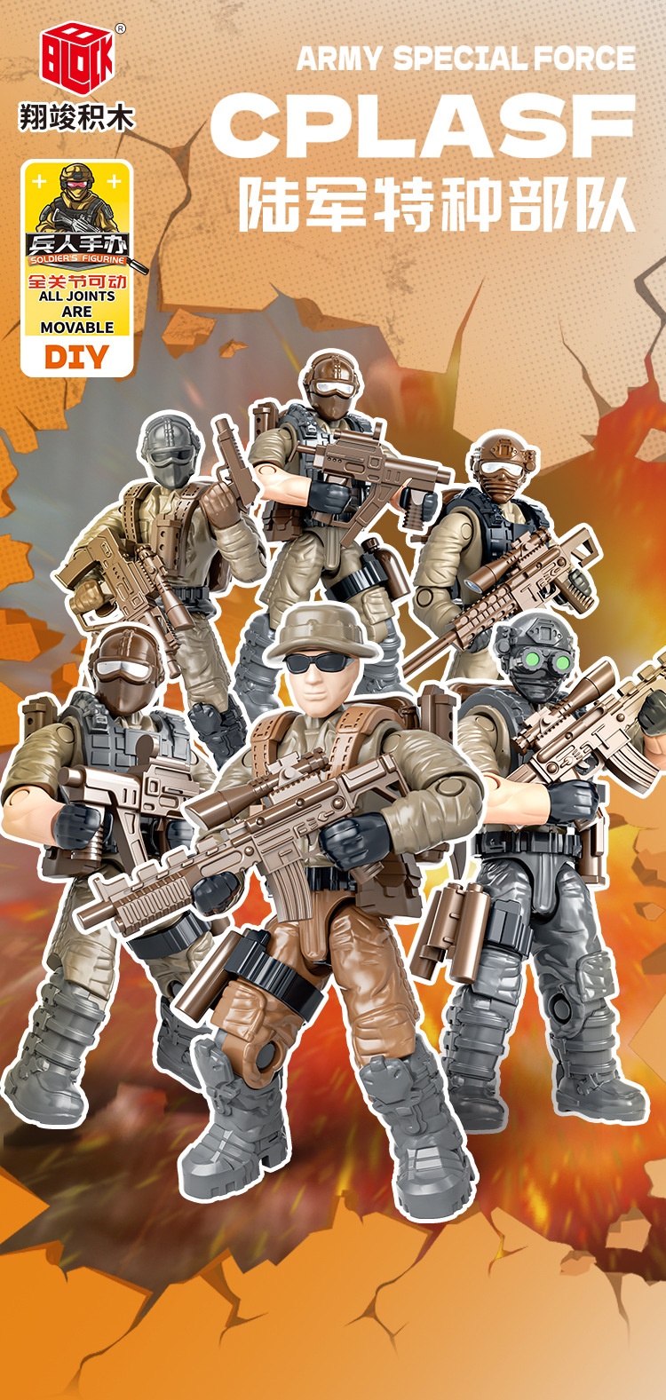 外贸拼装关节可动兵人军事模型积木小人仔玩具特种兵警察航天交警