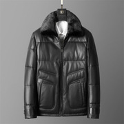 秋冬新款海宁真皮皮羽绒鹅绒男士绵羊皮夹克水貂毛翻领男装