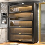 厨房餐边柜钢制落地多层多功能收纳微波炉储物碗柜双开门带门柜子