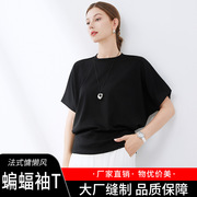 2026春夏新款短袖上衣女高级感蝙蝠袖法式简约宽松T恤女时髦减龄