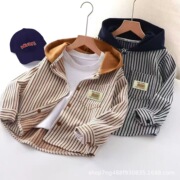 春秋款儿童长袖连帽外套男女宝宝条纹开衫条纹上衣时尚百搭外穿衣