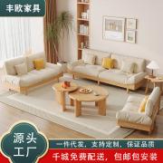 北欧风实木沙发组合冬夏两用小户型客厅直排沙发棉麻木加布艺沙发